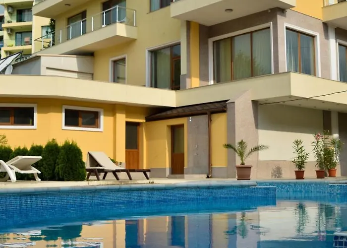 Beliggende 30 minutters gåtur fra Golden Sandss bymidten, tilbyder Golden House Apartments ferielejlighed en en privat parkeringsplads på stedet. Et værelse har en balkon, et opholdsområde og et fladskærms TV med satellitkanaler, mens køkkenet også indeholder en ovn, køkkenudstyr og en vaskemaskine.